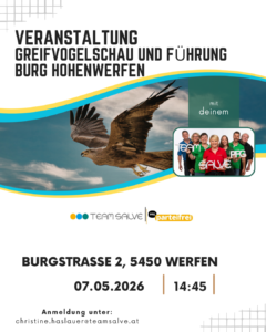 Wir freuen uns, euch unsere neue Homepage vorzustellen – besonders empfehlen wir einen Blick in unser Dienstrechts ABC! www.teamsalve.at Kulturelle Förderung für Salzburger Landeslehrpersonen Salzburger Pflichtschullehrpersonen können auch im Jahr 2026 um eine kulturelle Förderung ansuchen.Um die Kultureinrichtungen im Bundesland Salzburg zu unterstützen, besteht die Möglichkeit, für alle Kulturangebote – wie Konzerte, Theater, Kabarett, Programmkinos mit kulturellem Schwerpunkt und ähnliche Veranstaltungen im Bundesland – einen Zuschuss zu beantragen. Das Formular findest du HIER.Genaue Infos findest du im Video HIER. Arbeitsmedizinischer Dienst – AMD Das arbeitsmedizinische und arbeitspsychologische Team des AMD Salzburg unterstützt Salzburger Pflichtschullehrpersonen bei der Erhaltung und Förderung der Gesundheit.Du kannst dich vertraulich und kostenlos beim AMD melden.Aufgaben Arbeitsmedizin* Beratung im Rahmen von Arbeitsplatzbegehungen* Beratung und Information zu allen gesundheitsrelevanten Fragen (Berufsstimme, Lärm, Bildschirmarbeitsplatz, Erschöpfungszustände, Suchtverhalten,…)* Ermittlung der Ursachen von arbeitsbedingten Erkrankungen* Beratung zum Mutterschutz* Wiedereingliederung am Arbeitsplatz nach längerem Krankenstand* Arbeitsplatzspezifische Impfungen und Impfberatung Aufgaben Arbeitspsychologie* bei besonderer Belastung durch berufliche und private Stresssituationen* zur Unterstützung in Konflikt- und Mobbingsituationen* zur Stärkung der persönlichen Resilienz und Stressbewältigung* im Umgang mit Veränderungen in der Schule oder in Ihrem Arbeitsbereich* im Umgang mit beruflichen oder privaten Ängsten und Sorgen* für die Vermittlung zu entsprechenden Beratungsstellung und zu Expert*innen HIER findest du das Vorstellungsblatt des AMD und HIER die Vorstellung der Arbeitspsychologie. SALVE – Veranstaltung: Burg Hohenwerfen mit Greifvogelschau und Themenführung „Schinder Bärbel“ Alle interessierten Lehrpersonen sind herzlich eingeladen! 📅 Donnerstag, 07. Mai 2026 🕓 Treffpunkt: 14:45 Uhr bei der Talkassa 🏰 Burg Hohenwerfen: Greifvogelschau und „Themenführung – Schinder Bärbel“ Freut euch auf eine spannende Greifvogelschau und eine interssante Themenführung „Schinder Bärbel“ durch die Burg. ![]() Bitte sende deine Anmeldung an: christine.haslauer@teamsalve.at SALVE – der einzige parteifreie Lehrer:innenverein in Salzburg! |
